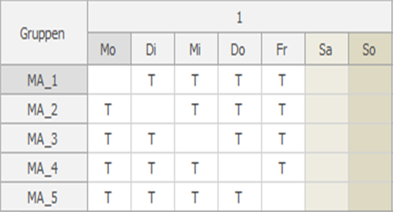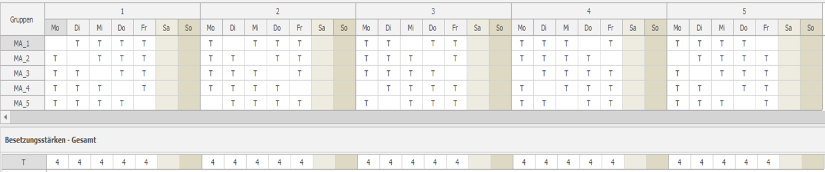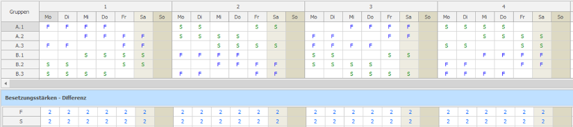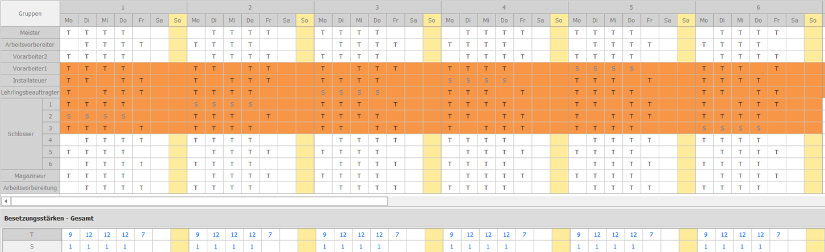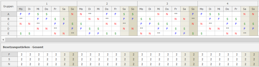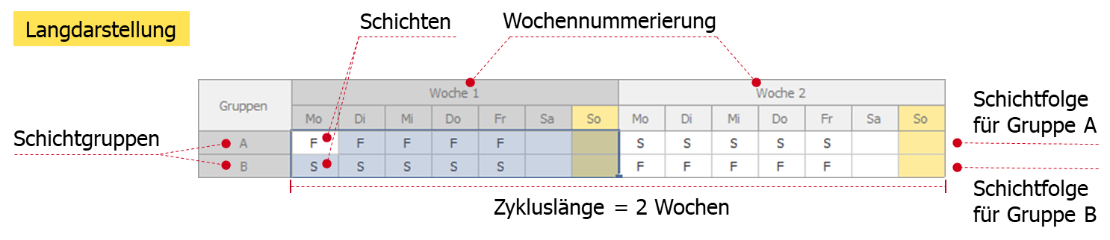 Erläuterungen zu Lesbarkeit von den Beispielen: Die Schichtpläne sind in der Langdarstellung präsentiert.