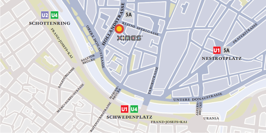Vom Flughafen Wien Schwechat aus ist die schnellste und bequemste Anfahrt mit dem Flughafenbus Linie VAL2 zum Morzinplatz/Schwedenplatz (fährt ohne Stop ca. 20 Minuten) nach Wien und endet am Morzinplatz. Von dort erreichen Sie XIMES zu Fuß in ca. 5-10 Minuten.