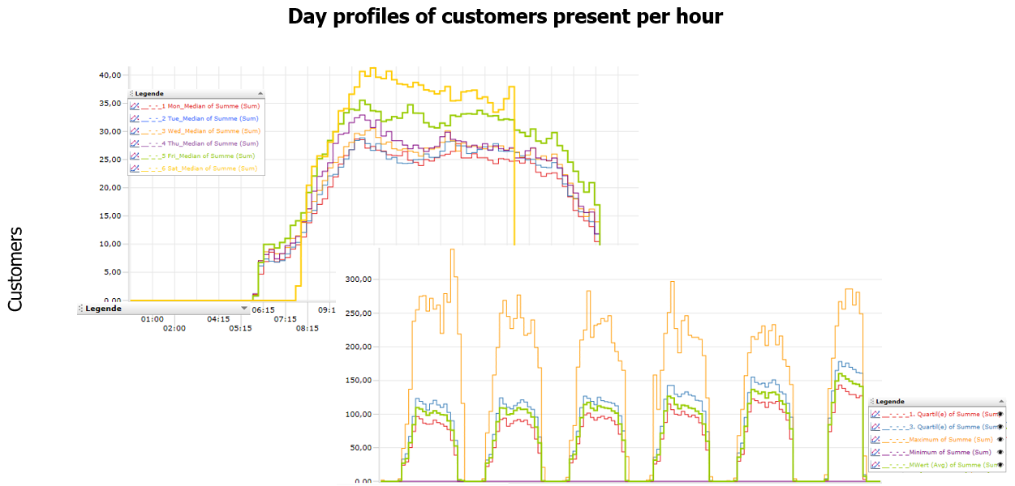 Beispiel für eine Auswertung der Tages- und Wochenprofile der tatsächlichen Arbeitszeit