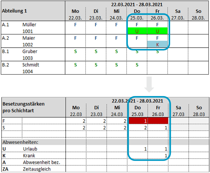 - Definition von Soll-Besetzungsstärken pro Schicht